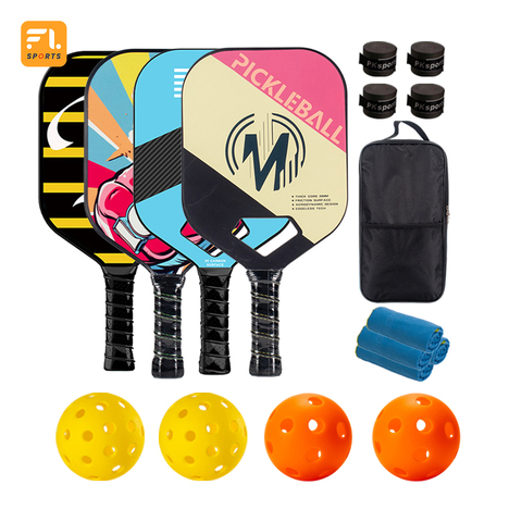 Hete Verkoop De Nieuwe Gekleurde Carbon Fiber Pickleball Peddels Pickelball Paddle Set